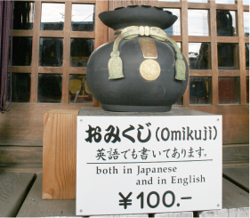 英語でも書いてあり、大黒様の袋の中より取り出すおみくじ
