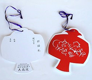 福紙に「願い事」を書いて、仏様の前に安置する「招福絵馬」